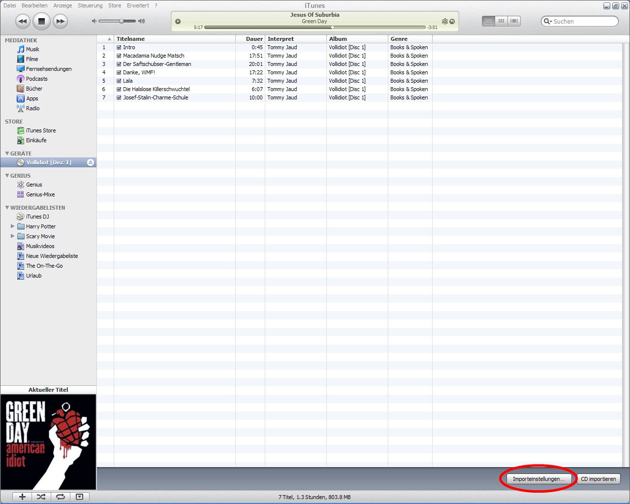 Als letzten Schritt empfehle ich, die CD-Dateien aus der iTunes-Mediathek zu löschen, da sie diese nun in einem Hörbuch haban.