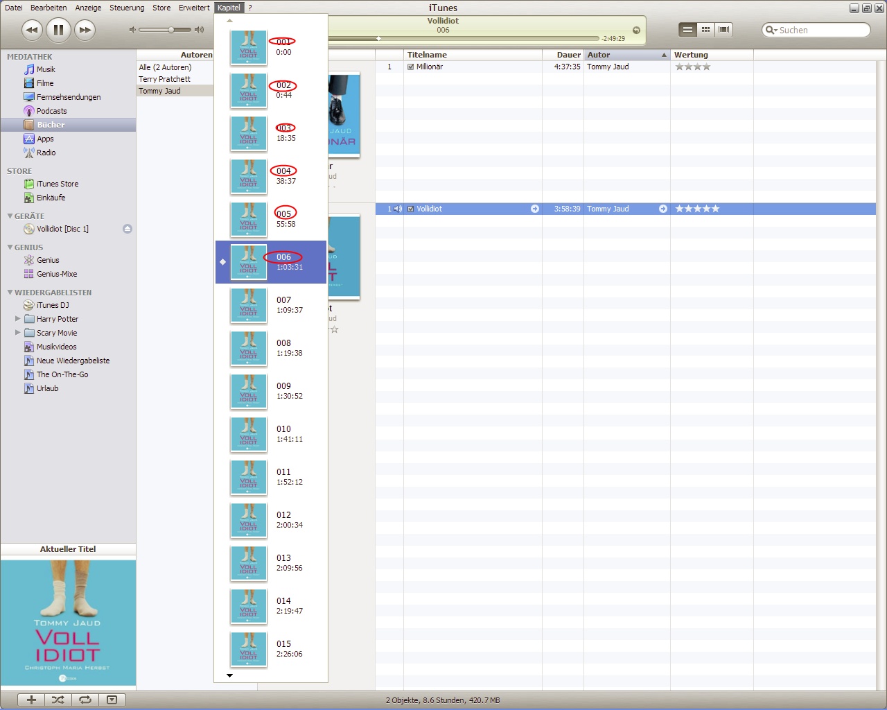 Das iTunes-Hörbuch besteht aus einer Datei mit schön gesetzten Kapiteln, während das CD-Hörbuch aus vielen einzelnen Dateien besteht.